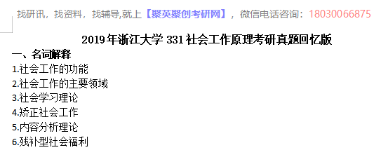 聚英浙江大学考研网整理了2019年浙江大学331社会工作原理考研真题回忆版,部分内容如下:完整内容请下载附件
