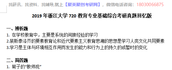 聚英浙江大学考研网整理了2019年浙江大学720教育专业基础综合考研真题回忆版,部分内容如下:完整内容请下载附件