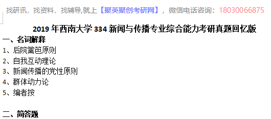 聚英西南大学考研网整理了2019年西南大学334新闻与传播专业综合能力考研真题回忆版,部分内容如下:完整内容请下载附件