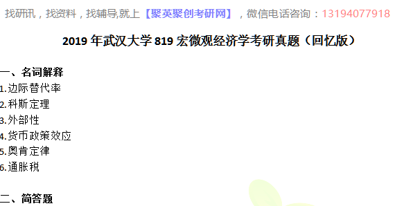 聚创武汉大学考研网整理了2019年武汉大学819宏微观经济学考研真题(回忆版),部分内容如下: