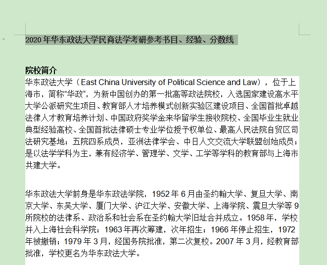 2020年华东政法大学民商法学考研参考书目、经验、分数线