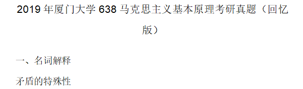 2019年厦门大学638马克思主义基本原理考研真题(回忆版)