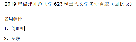 2019年福建师范大学623现当代文学考研真题(回忆版)