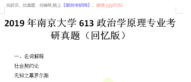 考研学习中,专业课占的分值较大。报考院校专业的考研专业课真题是专业课复习中必不可少的资料。聚创南京大学考研网为大家整理了2019年南京大学613政治学原理专业考研真题(回忆版),并且可以提供南京大学考研专业课辅导,希望更多考生能够在专业课上赢得高分,升入理想的院校。