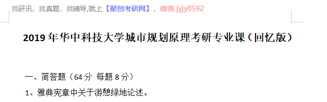 完整版请下载附件:2019年华中科技大学城市规划原理考研专业课(回忆版)