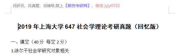 完整版请下载附件:2019年上海大学647社会学理论考研真题(回忆版)