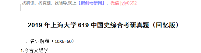 完整版请下载附件:2019年上海大学619中国史综合考研真题(回忆版)