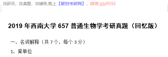 完整版请下载附件:2019年西南大学657普通生物学考研真题(回忆版)