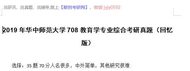 完整版请下载附件:2019年华中师范大学708教育学专业综合考研真题(回忆版)