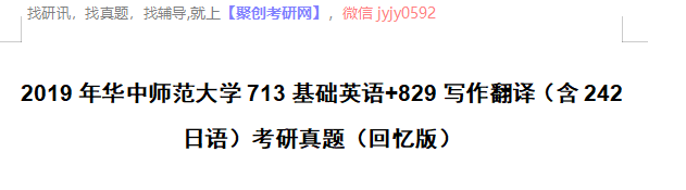 完整版请下载附件:2019年华中师范大学713基础英语+829写作翻译(含242日语)考研真题(回忆版)