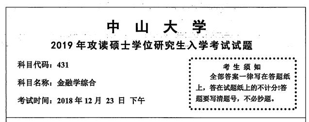 完整版请下载附件:2019年中山大学431金融学综合考研真题(完整版)