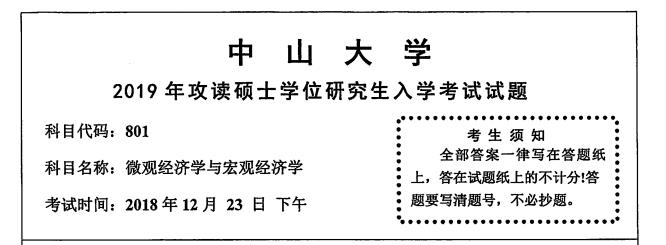 完整版请下载附件:2019年中山大学801微观经济学与宏观经济学考研真题(完整版)