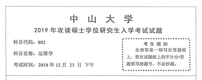 考研学习中,专业课占的分值较大。报考院校专业的考研专业课真题是专业课复习中必不可少的资料。聚创中山大学考研网为大家整理了2019年中山大学802运筹学考研真题(完整版),并且可以提供中山大学考研专业课辅导,希望更多考生能够在专业课上赢得高分,升入理想的院校。