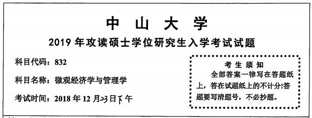2019年中山大学832微观经济学与管理学考研真题(完整版)