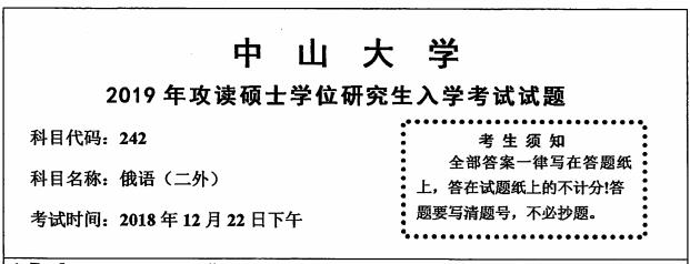 完整版请下载附件:2019年中山大学242俄语(二外)考研真题(完整版)
