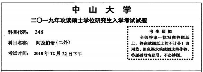 完整版请下载附件:2019年中山大学248阿拉伯语(二外)考研真题(完整版)