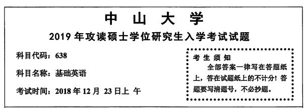 完整版请下载附件:2019年中山大学638基础英语考研真题(完整版)