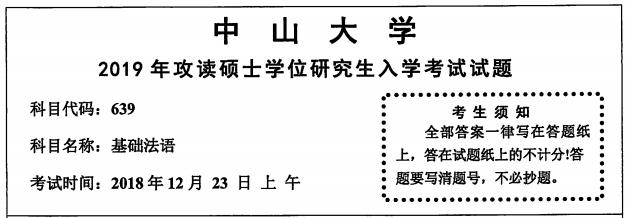 完整版请下载附件:2019年中山大学639基础法语考研真题(完整版)