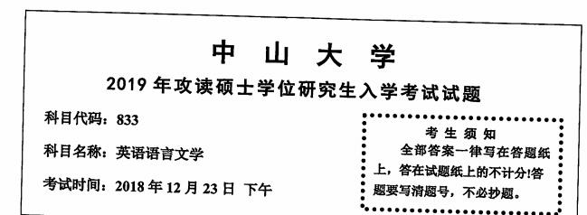 完整版请下载附件:2019年中山大学833英语语言文学考研真题(完整版)