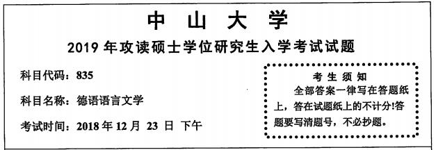 完整版请下载附件:2019年中山大学835德语语言文学考研真题(完整版)