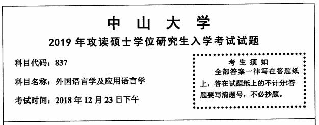 2019年中山大学837外国语言学及应用语言学考研真题(完整版)