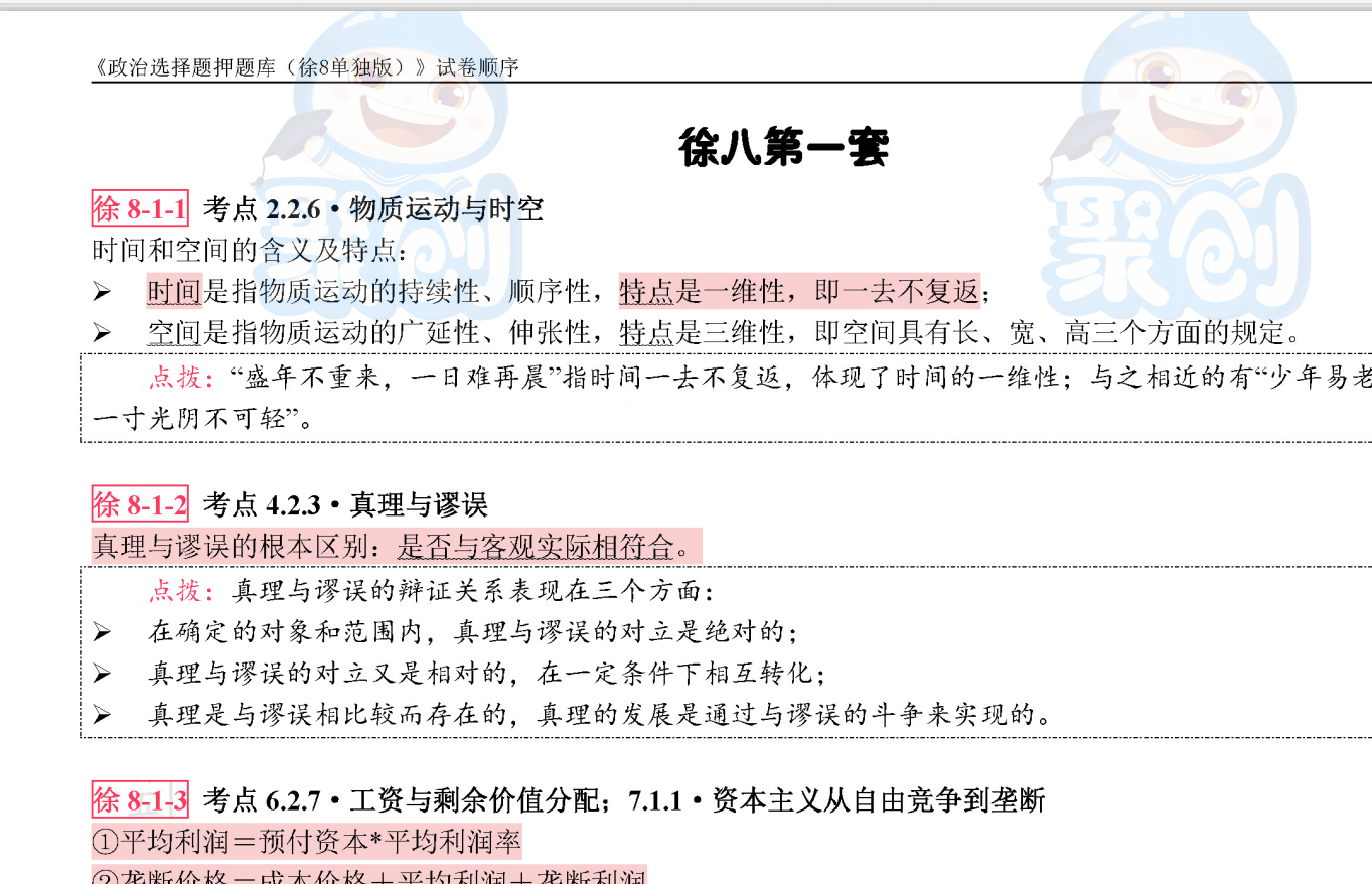 完整版请下载附件:【聚创考研】2020考研政治徐8《选择题押题(单独版)》