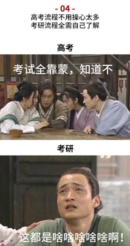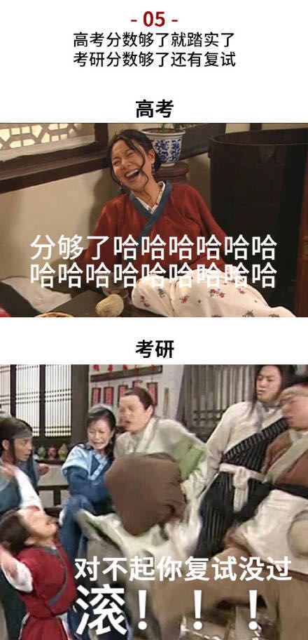 考研人不仅要自己了解考研流程,考研资料真题要自己找,就算初试过了还要参加复试,复试不过还要自己找学校调剂再复试。怎么样,看完是不是“男默女泪”了....