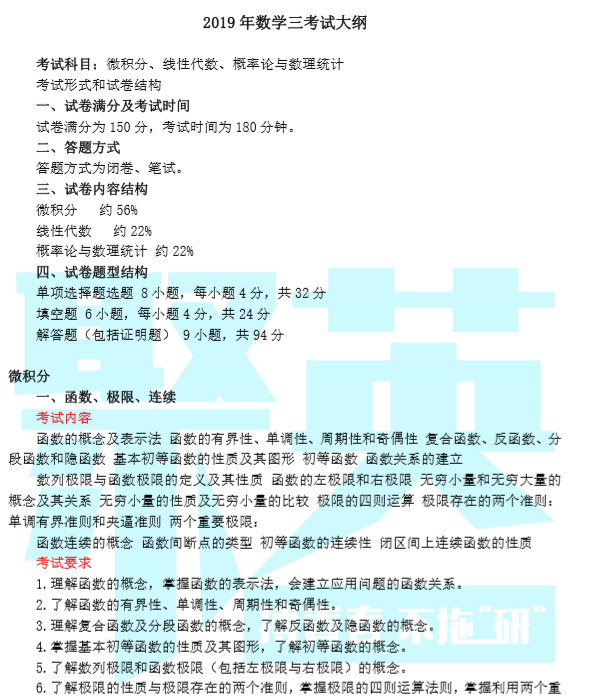 完整版内容请下载附件:2019年考研数学三考试大纲.pdf