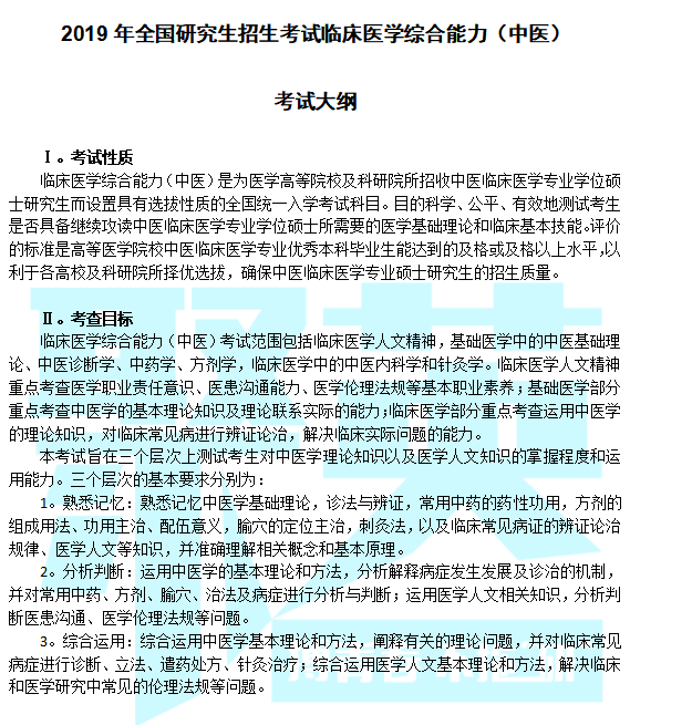 据悉,2019中医综合考研大纲原文已公布,聚英考研信息网为您整理内容如下: