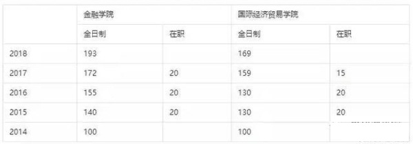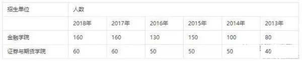 2018年国际商学院金融专硕计划招生50人,金融学院计划招生187人;2017年国际商学院金融专硕计划招生50人,金融学院计划招生150人;2016年国际商学院金融专硕计划招生40人,金融学院计划招生125人。