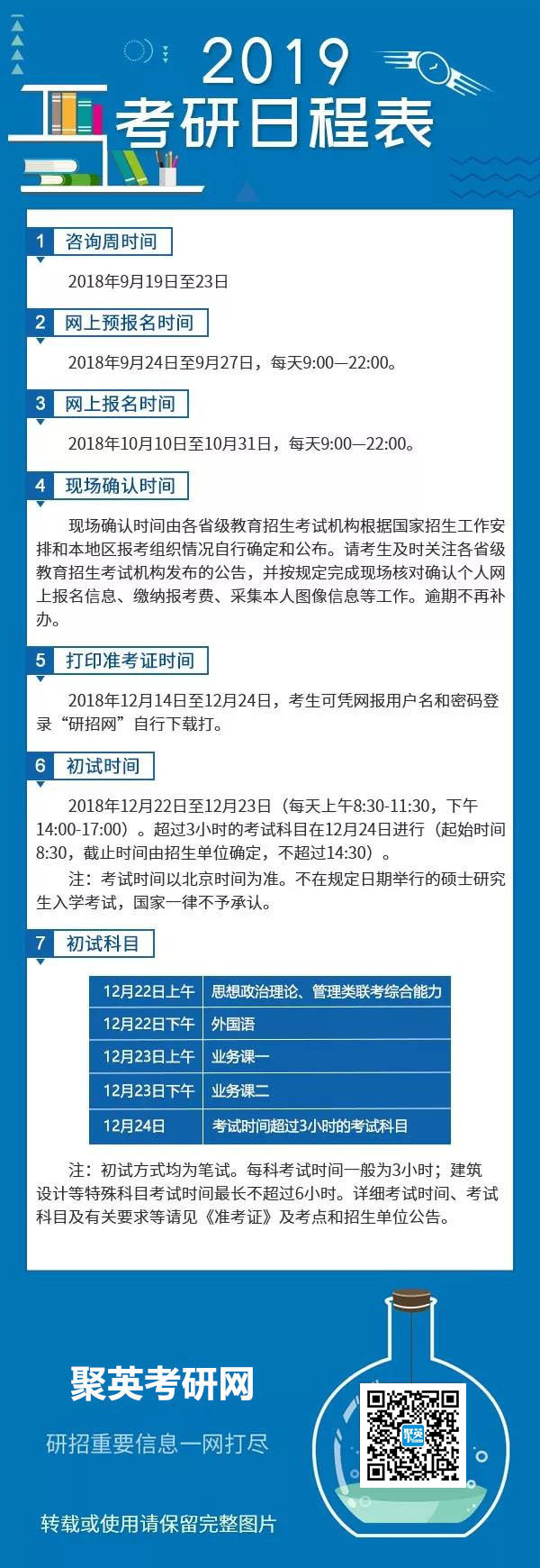 除了初试时间,2019考研还有哪些重要日程呢?聚英考研信息网小编马上看图了解。