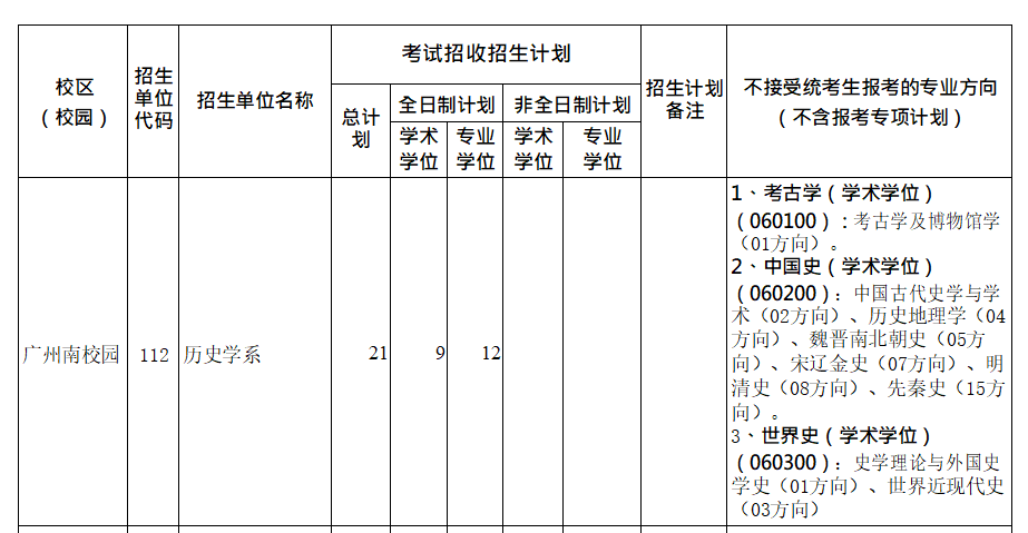 2019年:计划招生21人,总体招生人数不变,但学硕较去年减少3个名额,专硕增加3个名额;需要注意的是该院系不接受统考考生报考的专业方向,考古史和世界史依然不变,中国史中将18年的先秦史换成了中国社会经济史;意味着,今年中国史的先秦史方向可招收统考生,而中国社会经济史不接受统考考生报考。