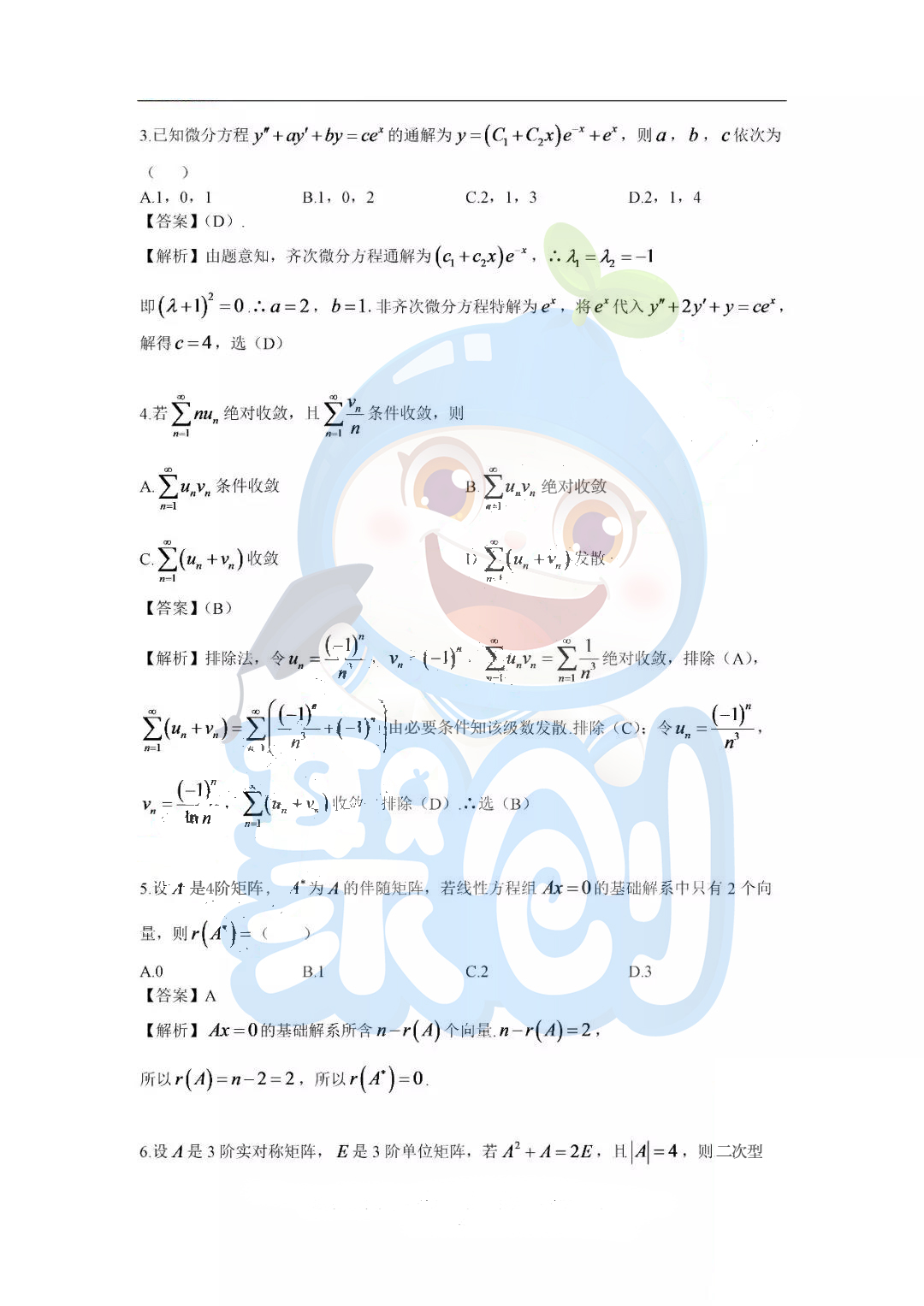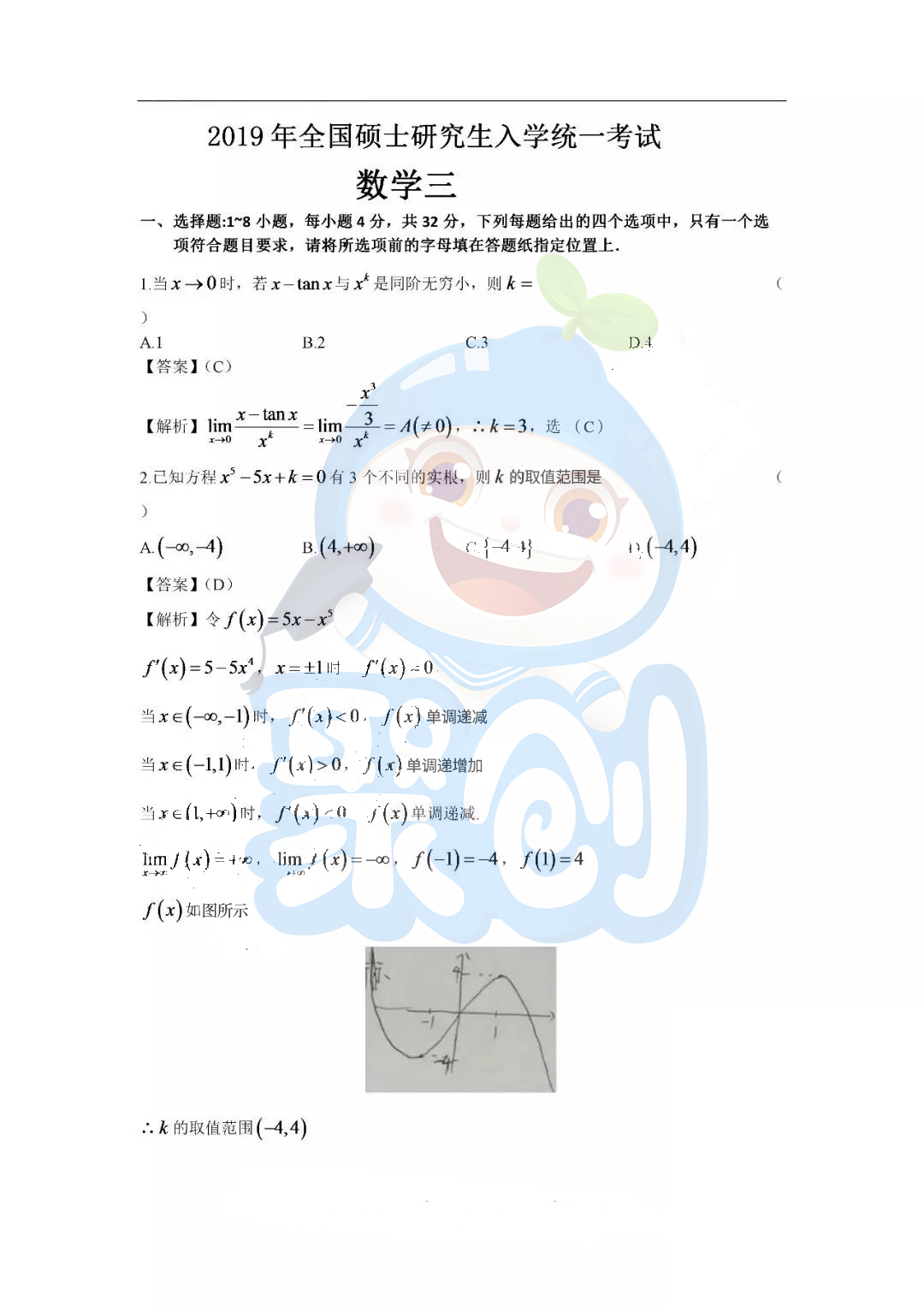 聚英聚创考研信息网小编在2019考研数学考试结束后,根据多位权威名师的解析,争分夺秒的整理发布2019年考研数学三真题及答案解析,以便帮助童靴们做好考后估分事宜。