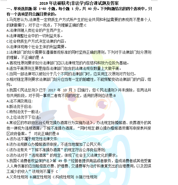 2019 年全国法律硕士(非法学)联考综合真题及参考答案解析