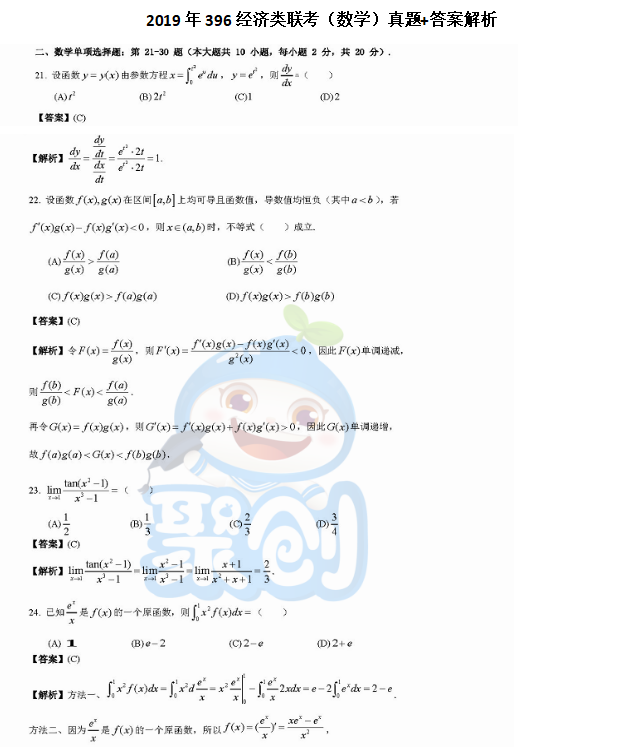 2019年全国研究生考试396经济类联考已结束,聚英厦门大学考研网小编为大家整理了2019年全国研究生考试396经济类联考试卷部分真题及答案解析,希望对大家有帮助!由于试卷内容分为逻辑推理、数学基础和写作三个部分,所以文章内容也分为三个部分发布,以下是第二部分数学基础。