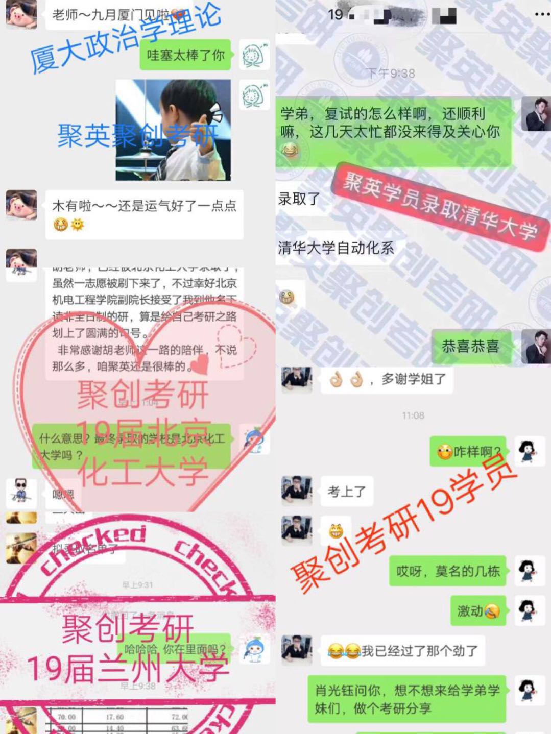 在读研究生助教经历过考研,也对导师及教务老师都很了解,能提供最及时、最实用的信息。聚创考研信息网每年都成功辅导了多名高分考生,对学科的重难点把握很透彻,有自己的学习方法和逻辑体系。