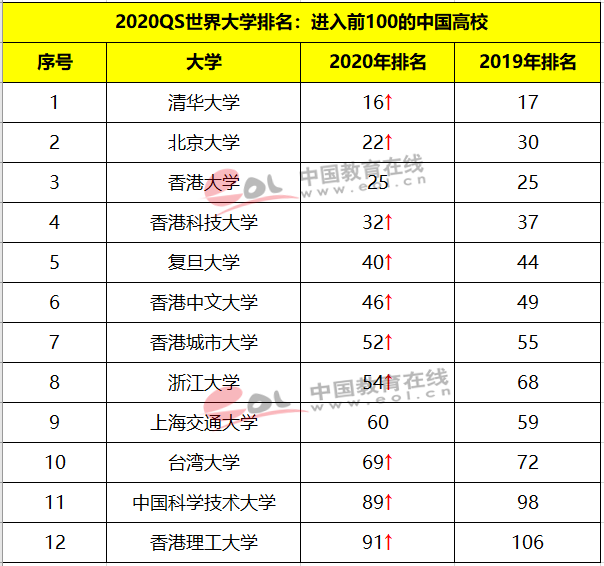除却清华北大,中国大陆高校在此次排名中表现突出的还有复旦大学、浙江大学、上海交通大学、中国科技大学,都跻身进入全球前100名。