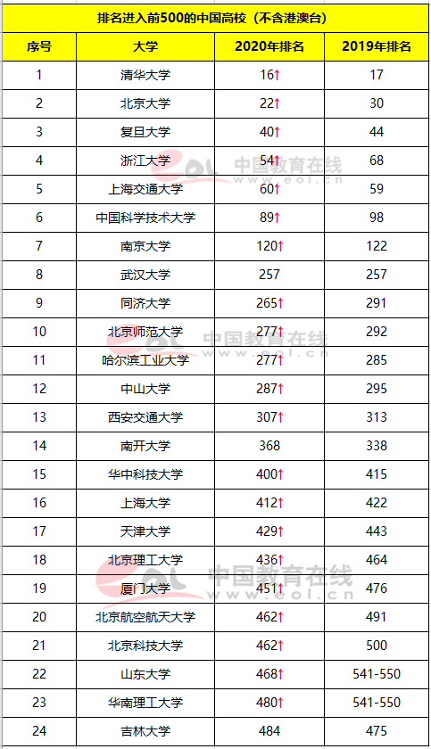 接下里再来看下排名进入前500的中国高校名单(不含港澳台):