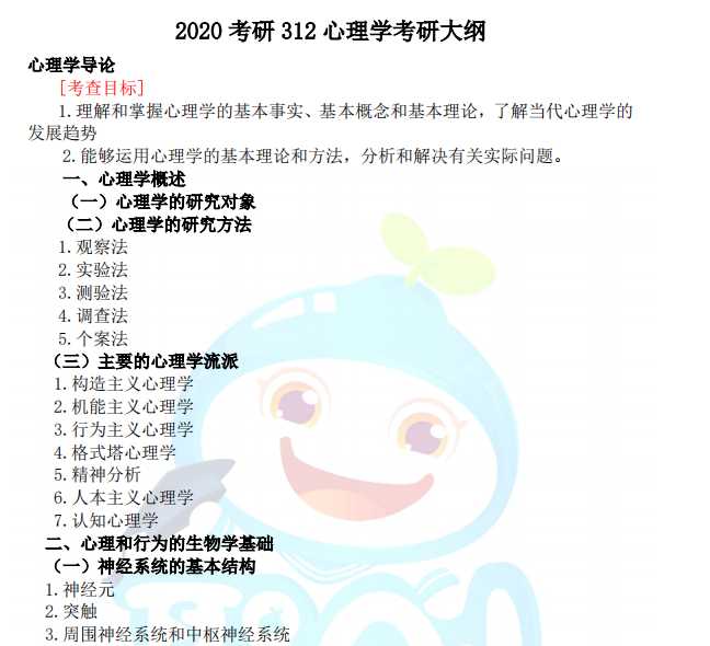 因考查内容较长,更多内容请大家点击链接下载查看:2020考研312心理学考研大纲