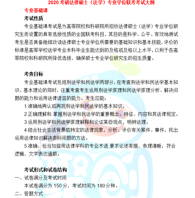 完整版内容请点击附件下载查看:2020考研法律硕士(法学)专业学位联考考试大纲