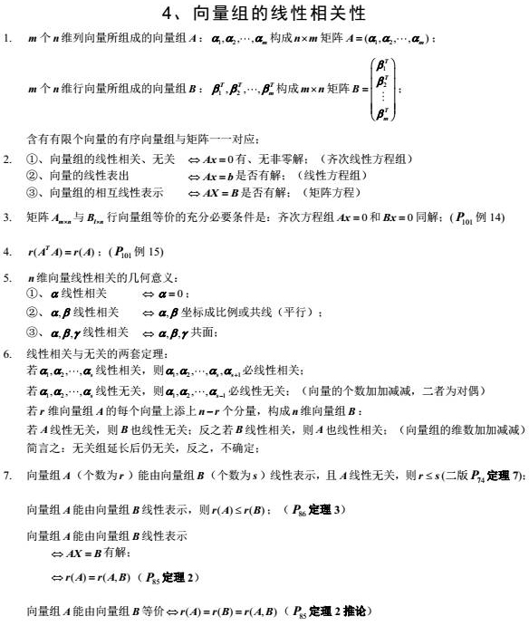 以上是聚创考研网为考生整理的"2020考研数学复习公式大全:【线性代数】——向量组的线性相关性"的相关考研信息,希望对大家考研备考有所帮助! 备考过程中如有疑问,也可以添加老师微信H17720740258进行咨询。