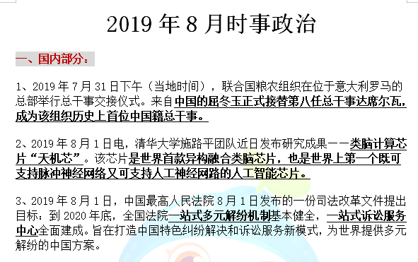考研政治成功的秘诀之一就是:及时关注国内外的时政热点新闻,时政热点作为考研的必考点,内容多而庞杂,为了节省小伙们的政治备考时间,聚创考研信息网小编总结了8月份的时政热点新闻,并在文章末尾有完整版附件可下载。