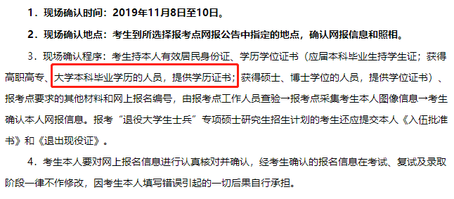 以上是聚创考研网为考生整理的"注意!根据2020年各省网报公告!只有这5省市现场确认不用学位证!"的相关考研信息,希望对大家考研备考有所帮助! 备考过程中如有疑问,也可以添加老师微信H17720740258进行咨询。