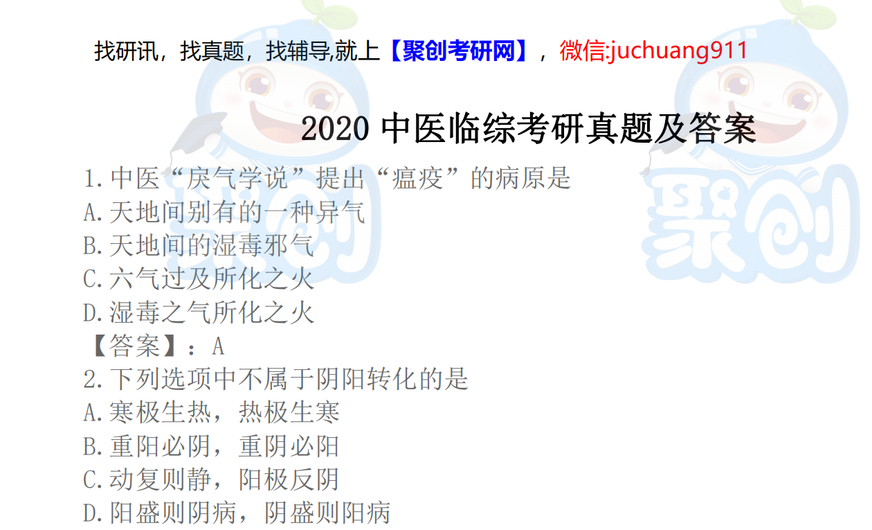 完整版请下载附件:2020中医临综考研真题及答案.pdf