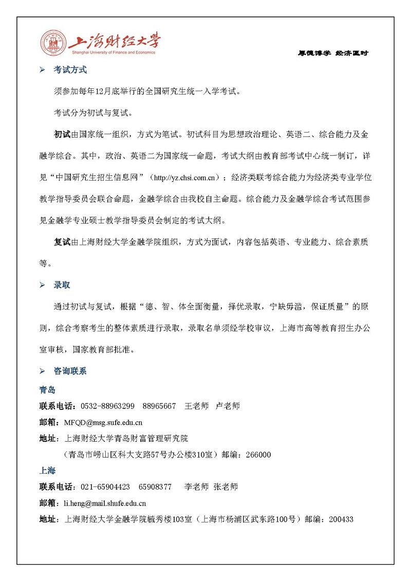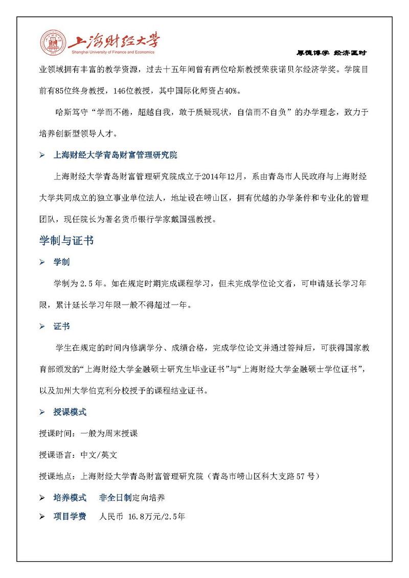 以上是聚创考研网为考生整理的"上海财经大学金融学院:2018伯克利金融硕士招生简章"的相关考研信息,希望对大家考研备考有所帮助! 备考过程中如有疑问,也可以添加老师微信H17720740258进行咨询。
