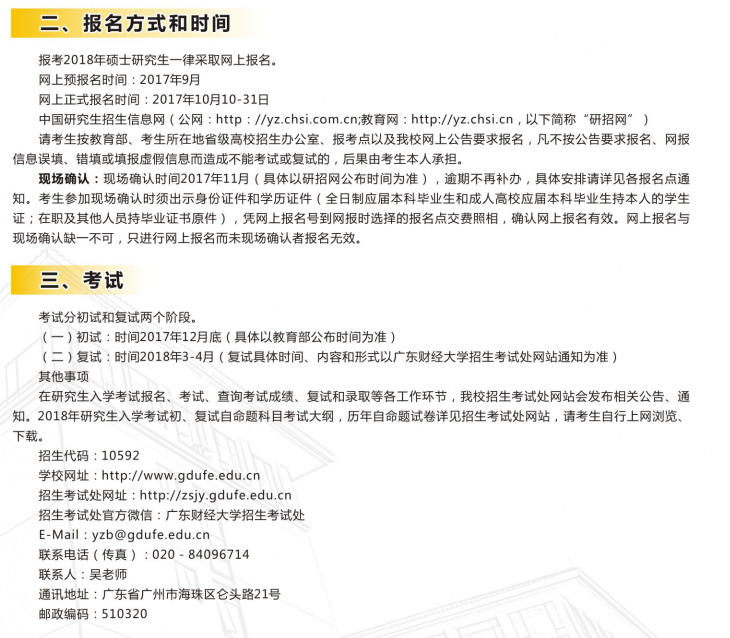以上是聚创考研网为考生整理的"广东财经大学2018年硕士研究生招生简章"的相关考研信息,希望对大家考研备考有所帮助! 备考过程中如有疑问,也可以添加老师微信H17720740258进行咨询。