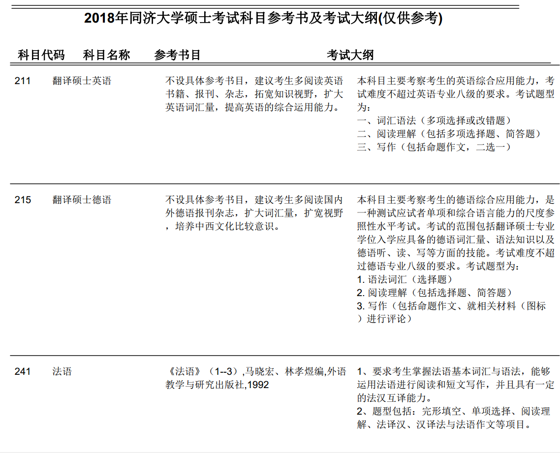 以上是聚创考研网为考生整理的"【汇总】2018年同济大学各院系硕士考试科目参考书及考试大纲(仅供参考)"的相关考研信息,希望对大家考研备考有所帮助! 备考过程中如有疑问,也可以添加老师微信H17720740258进行咨询。