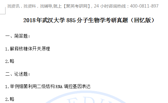 聚英武大考研网整理了2018年武汉大学885分子生物学考研真题(回忆版),部分内容如下: