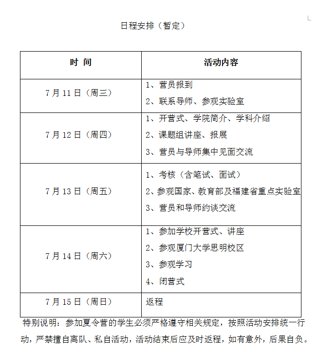 资格审核工作将于6月25日左右结束。营员入围名单将于6月25日左右通过我院网站(http://cee.xmu.edu.cn)公布,不再另行通知,请注意查看。