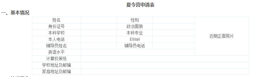 (1)夏令营申请表1份;(见附件1,除签字手写外,其余信息均打印)